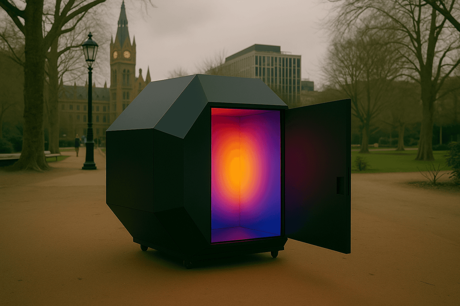 Exploring the intersection of light, sound, and somatic experience, Soluma reframes immersive art as a tool for emotional healing and conscious recalibration. As participants enter the chamber, slow-shifting tones and luminous gradients interact with reflective geometries, creating a meditative atmosphere that encourages loosening, grounding, and a return to breath.